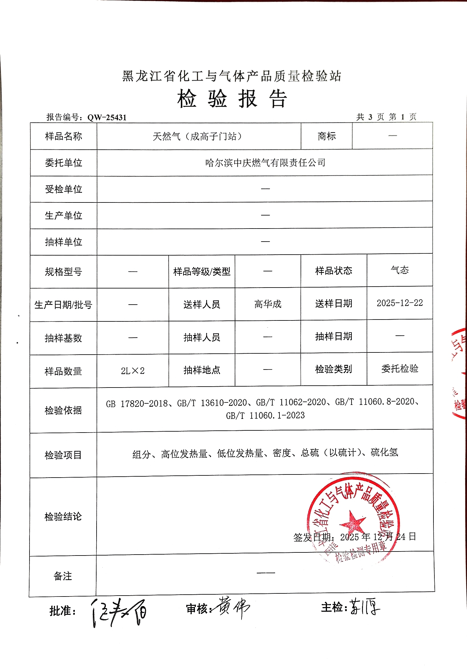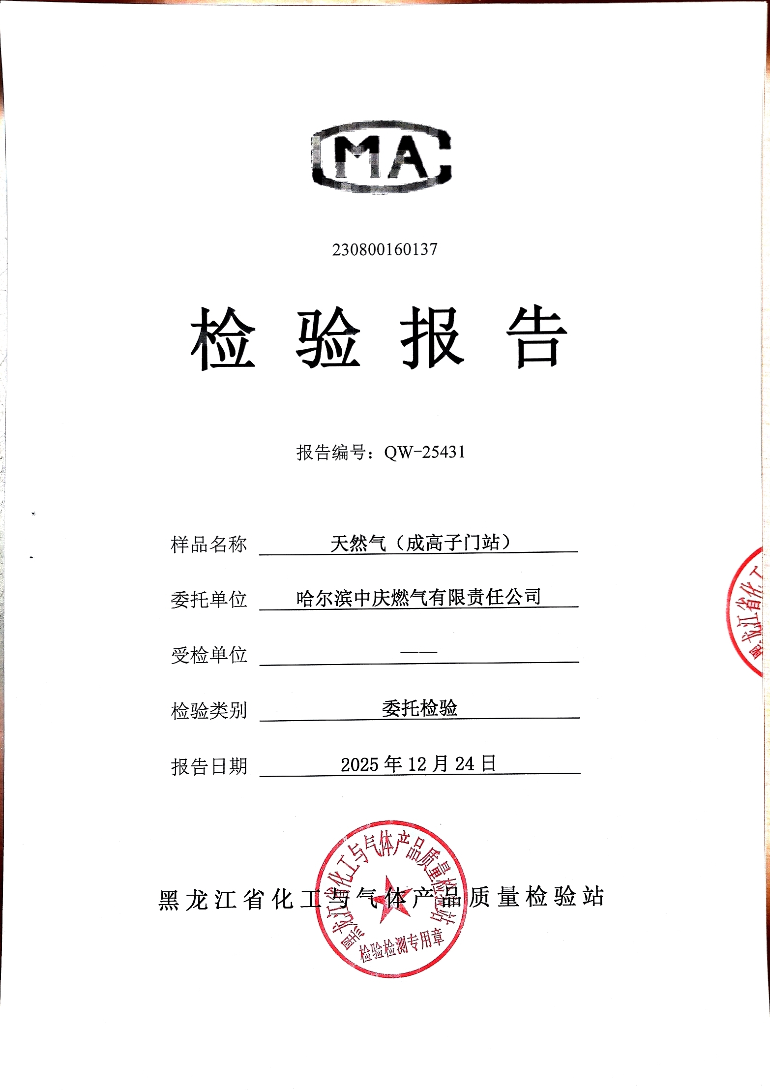 燃气检验报告2025年12月
