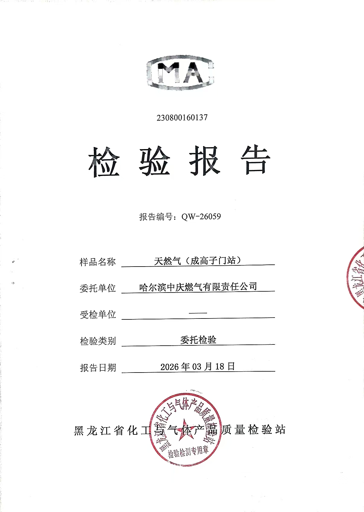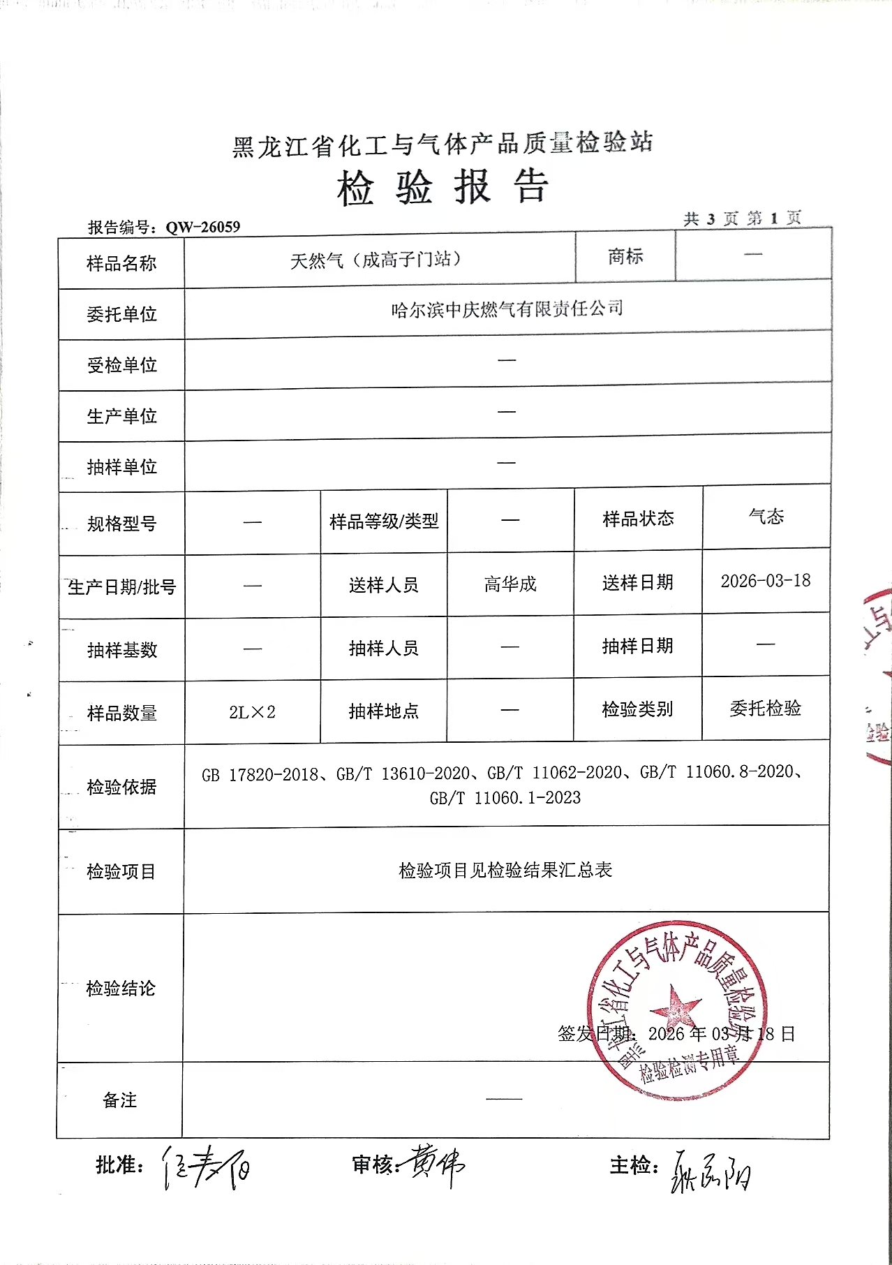 燃气检验报告2026年3月