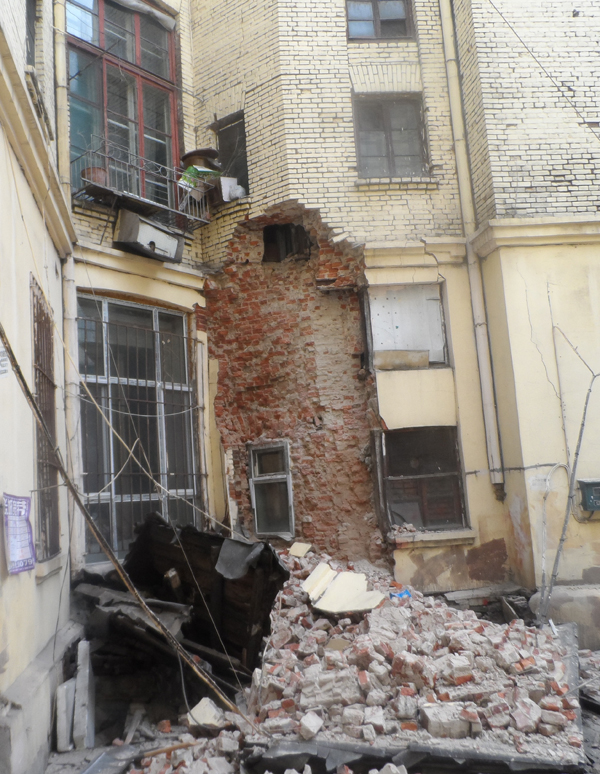 3月29日,道里第一营业分公司调度室接到报警,辖区内经纬大街202号1、2单元三层小楼出现部分墙体坍塌,立即启动紧急抢险预案,通知分公司相关领导和工作人员,同时将情况上报公司调度中心。