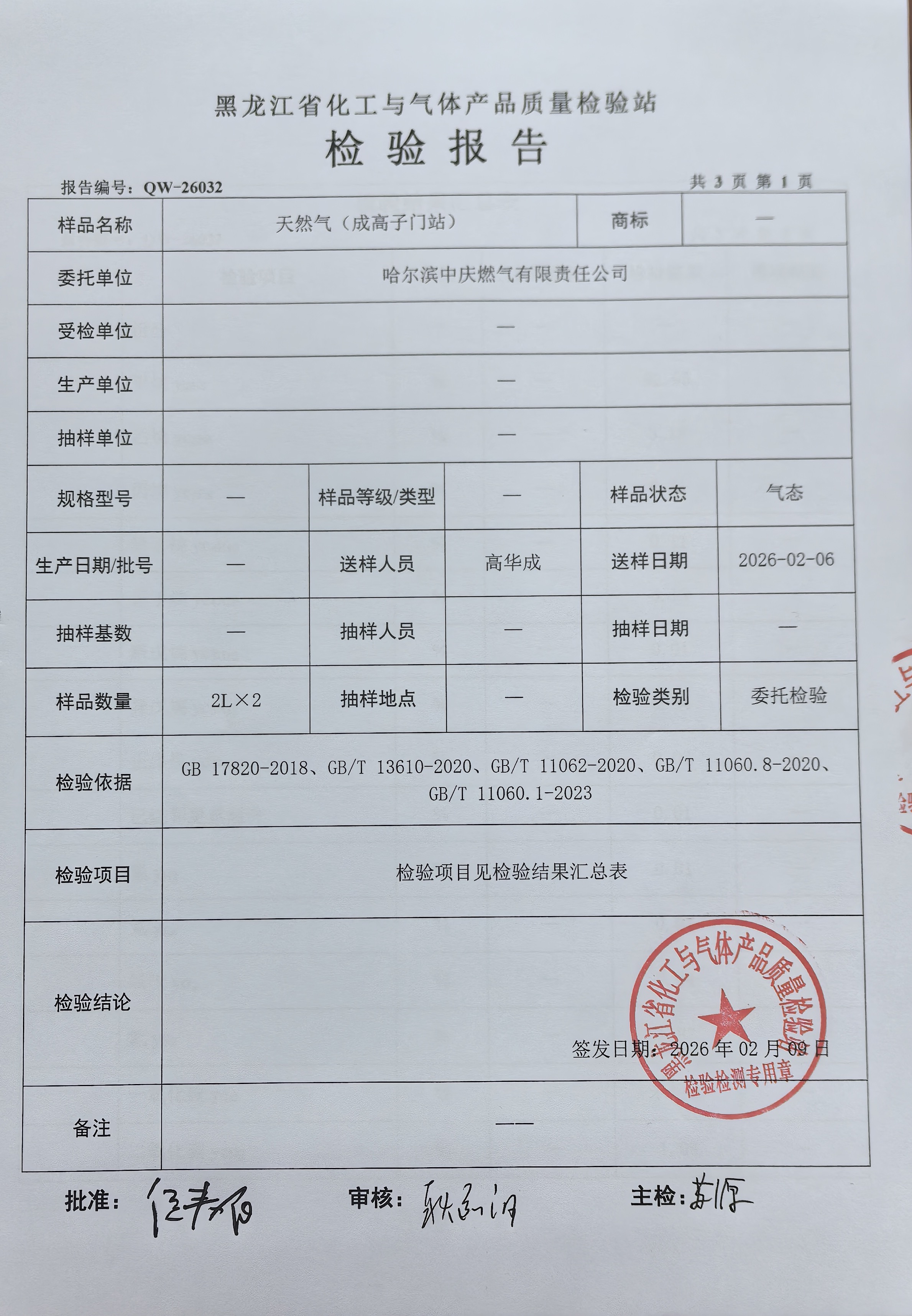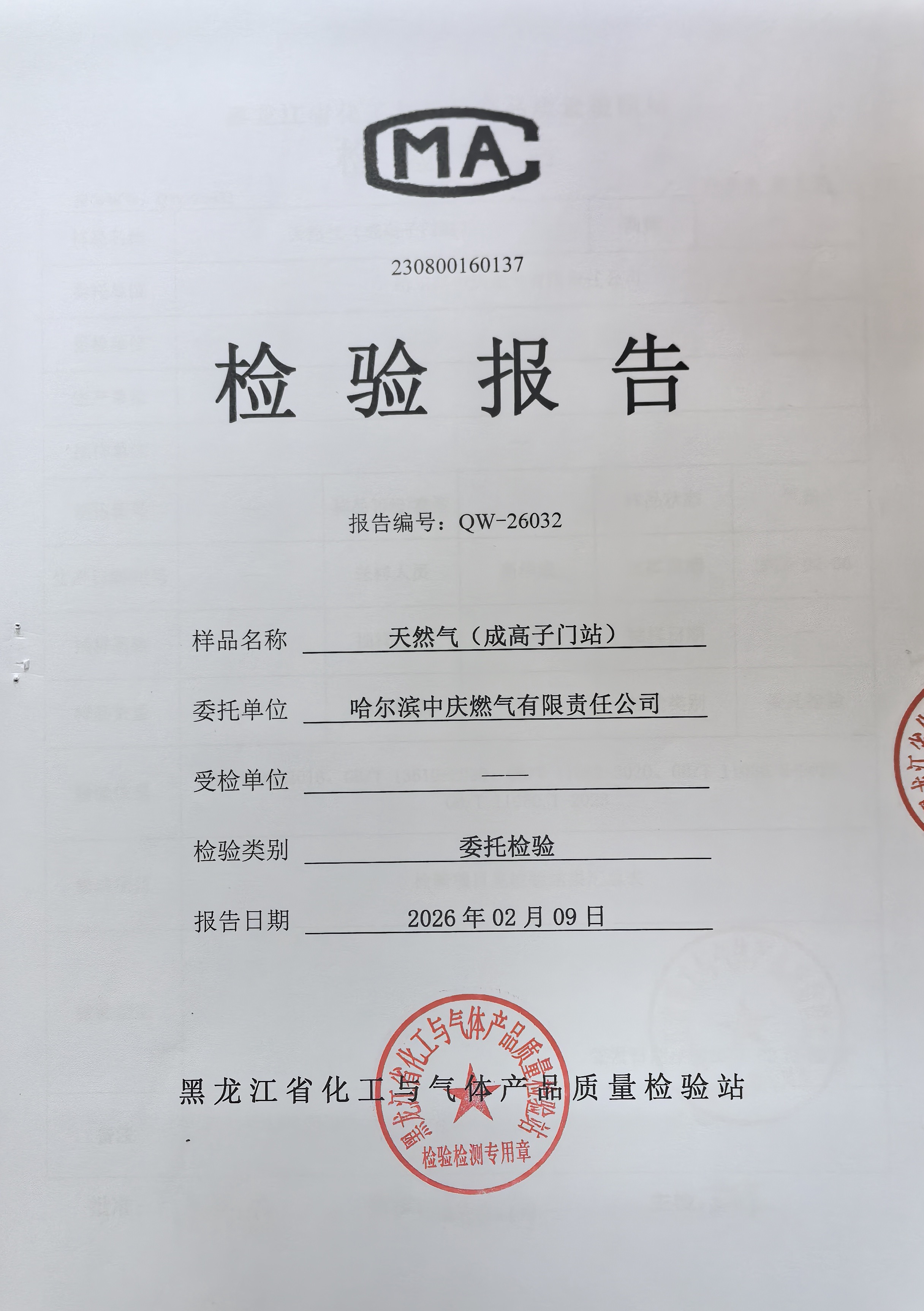 燃气检验报告2026年2月
