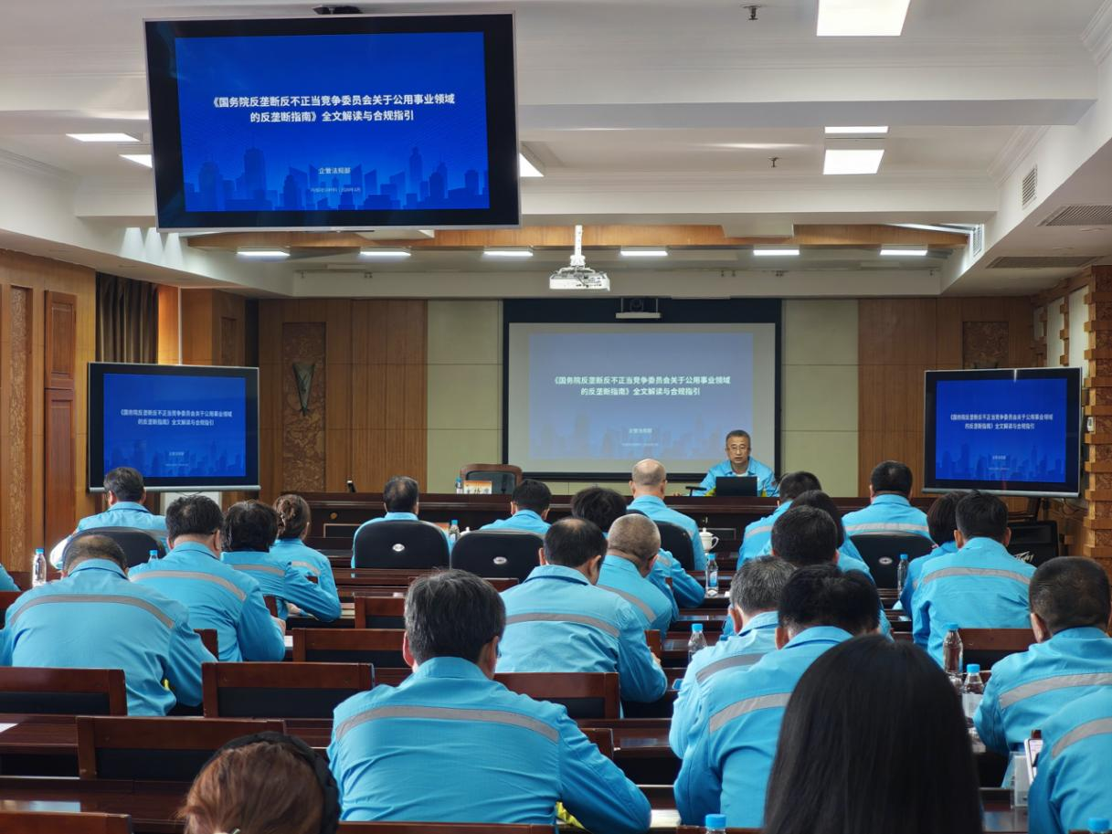公司企管法规部同步开展为期一周的调研座谈,深入各子、分公司,现场解读反垄断指南。结合基层单位业务实际,聚焦燃气报装、增值业务等重点领域,详解合规要求、明确负面清单禁止事项,现场解答疑点难点,督促补齐合规管理短板。